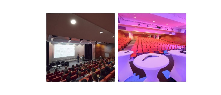 Notre auditorium spacieux et modulable peut accueillir jusqu'à 230 personnes et offre un cadre idéal pour vos événements clés en main : profitez de nos équipements audiovisuels (offrant une sonorisation de qualité) et de nos services de restauration pour prolonger votre événement d'entreprise (petit-déjeuner, déjeuner d'équipe, buffet, cocktail…).